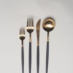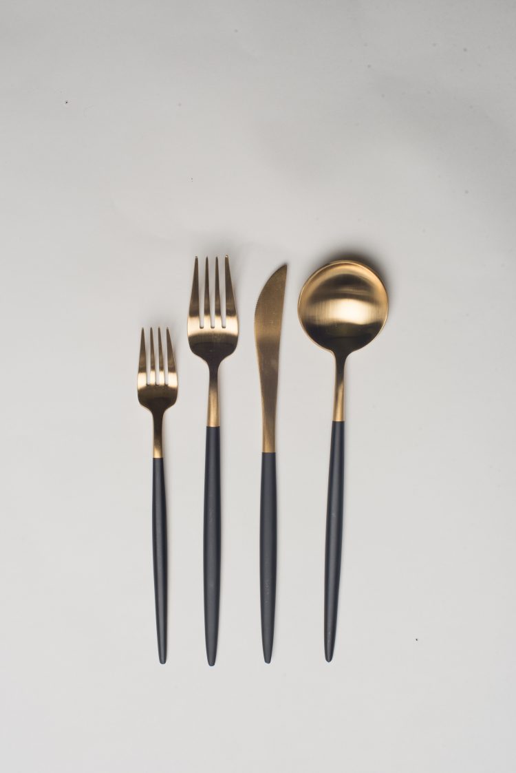 Our classic brushed gold flatware, dipped in matte black at the stem.