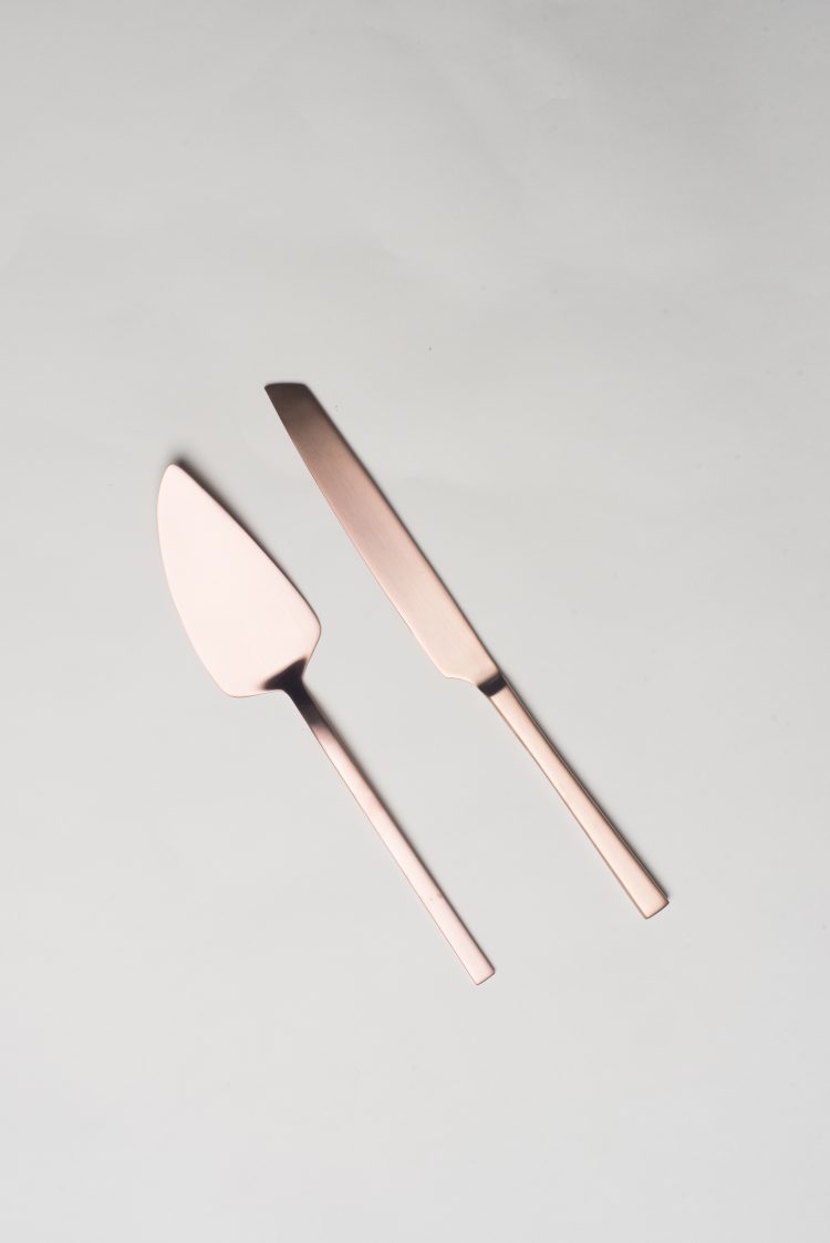 Sleek and stunning rose gold cake knife and server. Looks fab with our mango wood cake stand!