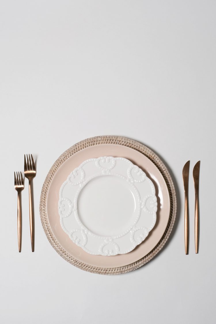 Optional French champagne glasses available. Optional Cecilia bread and butter plate available.